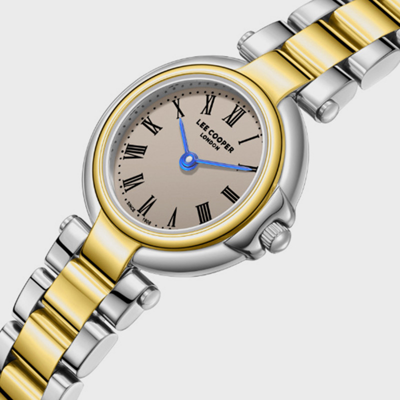 جنس بند استیل رنگ بند طلایی-نقره ای گارانتی 2سال جنس شیشه معدنی مقاوم در برابر خش موتور کوارتز مقاومت در برابر آب تا 30 متر رنگ صفحه کرم منبع انرژی باتری