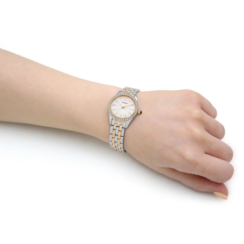 جنسیت زنانه نوع موتور ساعت باطری دار (کوارتز) نوع سنگ استفاده شده کریستال اتمی اصالت مارک ژاپن مقاومت در برابر آب 50متر نوع کاربری کلاسیک ,روزمره مشخصات بند جنس بند استیل رنگ بند استیل ,طلایی طرح بند فلزی ساده مشخصات صفحه نوع نمایش عقربه ای رنگ صفحه سفید رنگ قاب طلایی ,استیل فرم قاب گرد جنس قاب استیل نوع شیشه کریستال گارانتی موارد گارانتی کارکرد موتور ,مقاومت در مقابل آب