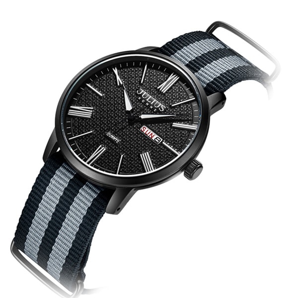 برند: جولیوس اصالت کالا: اصل گارانتی: 12 ماه اصالت برند: کره مناسب برای: آقایان کاربری: اسپورت -کژوال -روزمره موومنت: ژاپن تکنولوژی موومنت: کوارتز منبع انرژی: باتری دارای نمایشگر تاریخ و روزهای هفته رنگ صفحه: مشکی قطر قاب: 40 شیشه: کریستال معدنی مقاوم در برابر خش مقاومت در برابر آب: در حد شستشوی دست رنگ قاب : مشکی جنس بند: نیتو رنگ بند: مشکی-طوسی همراه با باکس و بگ و دفترچه گارانتی محصول